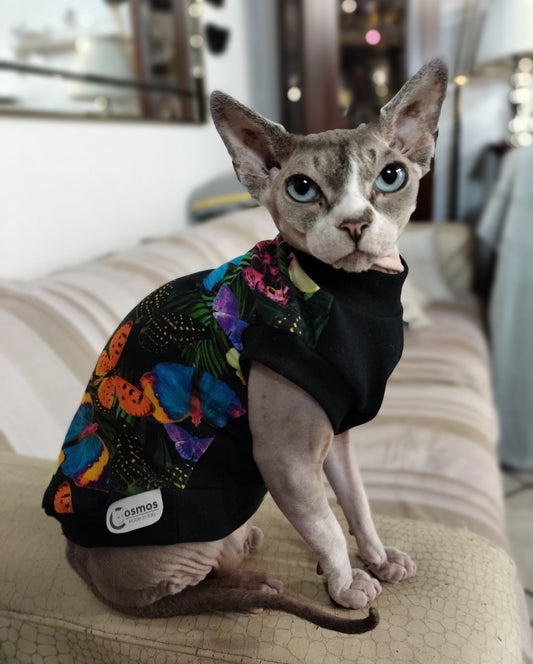 I nostri Sphynx, nonostante abbiano una temperatura corporea più elevata della nostra, per mantenersi al caldo possiamo aiutarli, oltre che con una alimentazione adeguata, coprendoli con dei vestitini.
