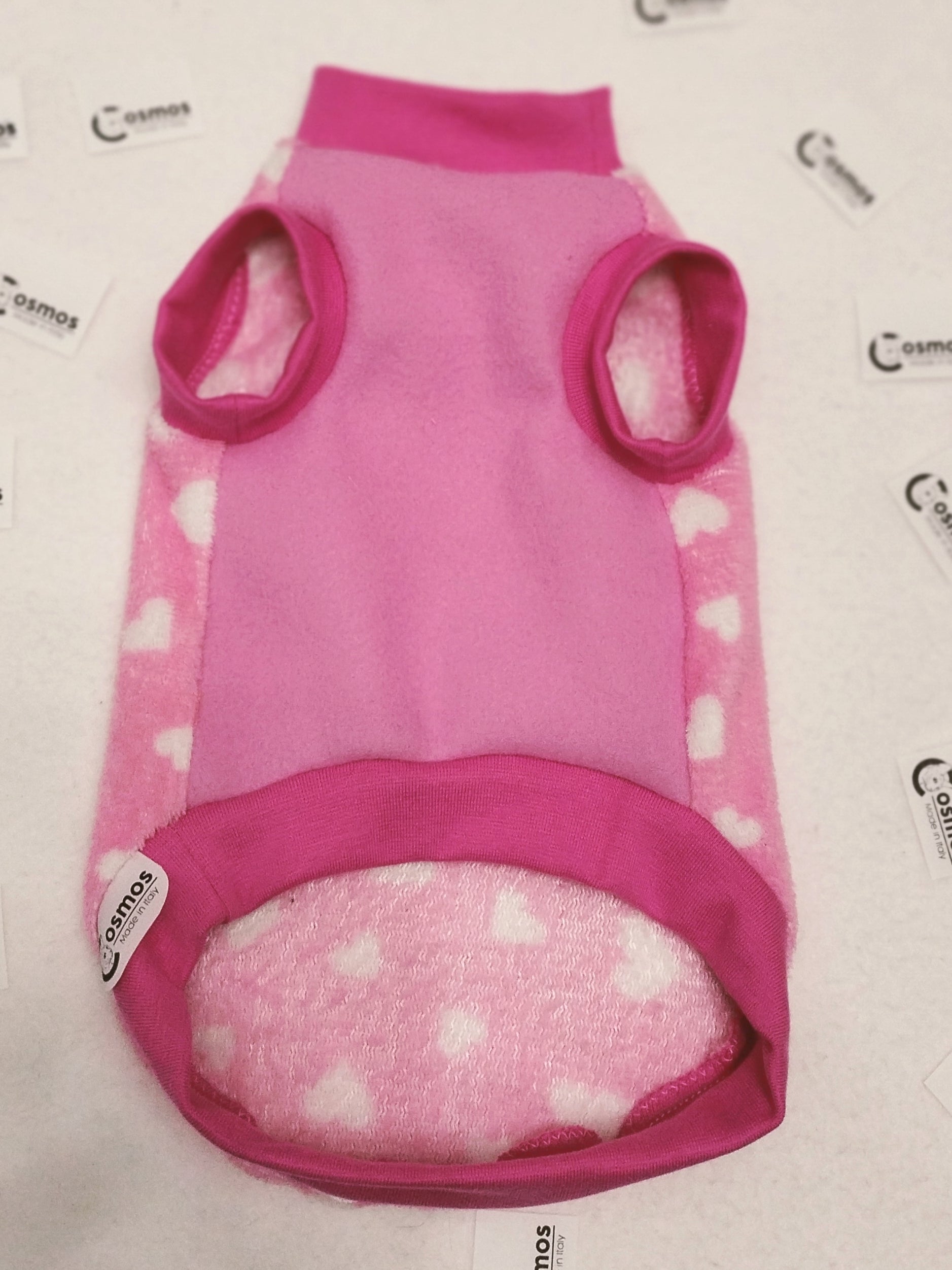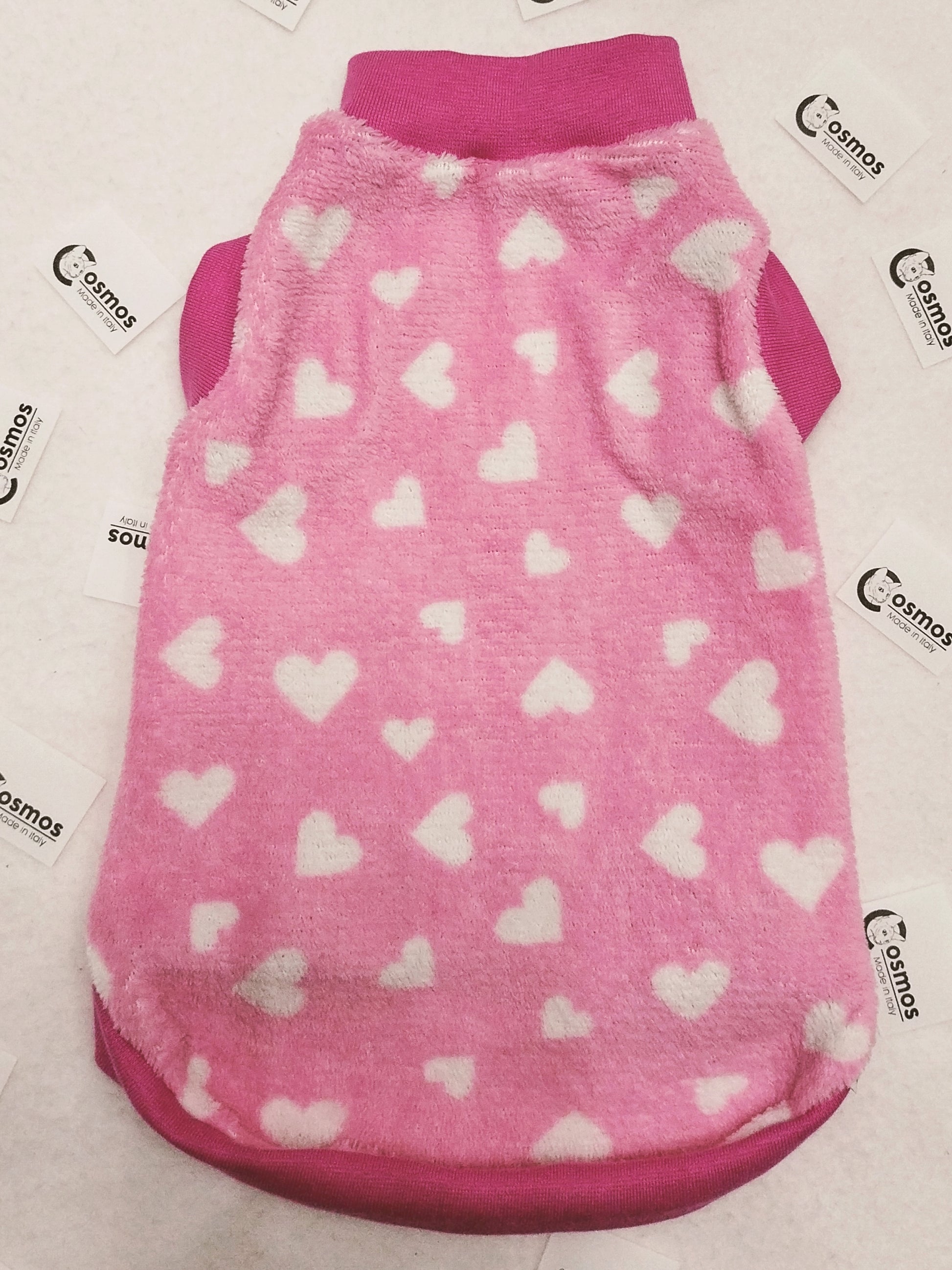 Pile cinigliato leggero con cuori bianchi su fondo rosa, foderato in pile